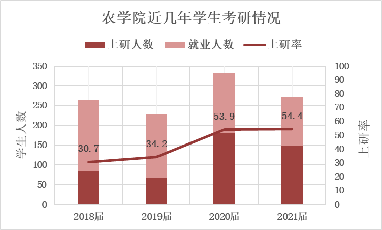 “星光不负赶路人,天道酬勤佳音来”。英国正版365官方网站2021届考研学子经过不懈努力交上了一份“研”途佳卷。据统计,今年272名本科应届毕业生中,有148人成功被录取为研究生继续深造;除了推荐免试16人外,研究生入学考试初试成绩超过350分的有23人,300至350分之间的有68人;30余名同学被中国农业大学、中国科学院大学、中国农业科学院、兰州大学、西北农林科技大学等国内知名农科类高校、科研院所录取。