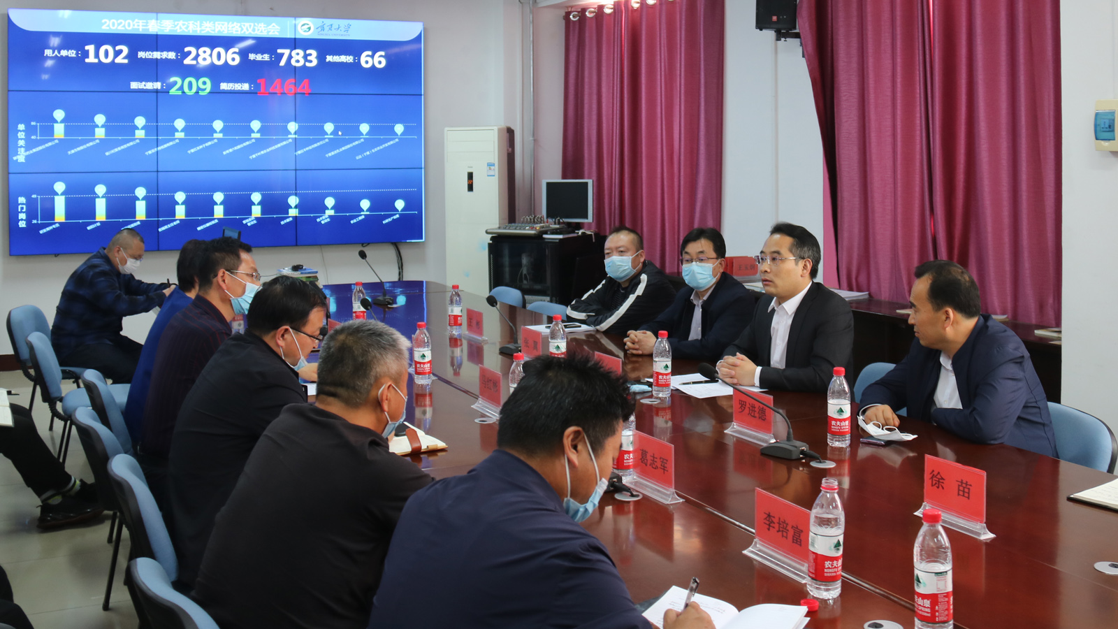 为做好疫情期间毕业生就业指导和服务工作,促进农科类毕业生就业,4月28日,英国正版365官方网站举办2020届农科类毕业生春季“云双选”招聘会。英国正版365官方网站791名毕业生、其他高校66名毕业生以及自治区内外102家企业参加了此次双选会。英国正版365官方网站103会议室通过大屏幕实时监控双选会的动态数据,校常委、副校长史金龙等一行到场了解招聘情况。