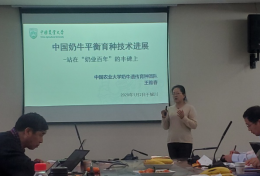 张胜利教授以“奶牛遗传改良技术与发展趋势”为题做报告。介绍了我国奶牛群体遗传改良所取得的进展,阐述了基因组选择技术对奶牛育种的重要性及国内外基因组选择技术的应用情况,剖析了大数据时代的奶牛育种特点,并对我国奶牛群体改良工作的未来进行了展望。王雅春教授以“中国奶牛平衡育种技术进展-站在‘奶业百年’的丰碑上”为题,从介绍“平衡育种”的概念着手系统阐述了北美和我国奶业发展状况,展示了我国在奶牛平衡育种技术和建立规模化奶牛场育种体系方面的研究进展。紧接着,中国农大博士生代表石少磊、硕士生代表张海亮以及英国365官网2019级动物遗传育种与繁殖专业7位博士生围绕各自承担的科研课题依次开展汇报,师生们提问作答精彩纷呈,中国农大张胜利、王雅春老师和英国365官网动物遗传育种与繁殖学科点老师组成的交流考核组为研究生报告作了点评。