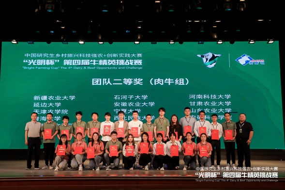 5月21-23日,由中国学位与研究生教育学会、中国科协青少年科技中心、全国农业专业学位研究生教育指导委员会共同主办,中国农业大学和西北农林科技大学联合承办的第四届农林高校“光明杯”牛精英挑战赛在陕西杨凌进行。本届比赛升级为中国研究生创新实践“乡村振兴科技强农+”主题赛事之一,是畜牧领域级别最高的比赛,共有来自全国41所高校62支队伍参加比赛。在将近3天的比赛中,我校参赛选手充分展示了专业能力、团队精神和良好的精神风貌。奶牛团队参赛选手郭成、王凤莲、马旭林、樊希雅获得奶牛组团队一等奖,郭成荣获个人二等奖;肉牛组参赛选手张转弟、王庆、李金转、杨博获得肉牛组团队二等奖,张转弟荣获个人二等奖。