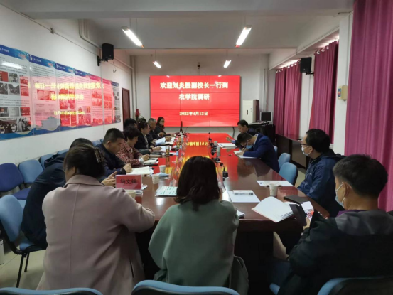 【钱瑾/文、杨茗媛/图】4月12日上午,副校长刘炎胜一行来学院调研指导工作。学院党政班子成员、系主任和三办主任参加了会议。会议由学院党委书记武林波主持。