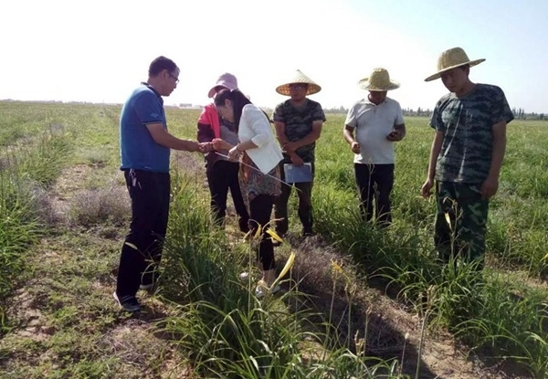 张雪艳(左二)在田间为农民解决问题 张雪艳供图