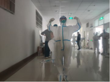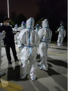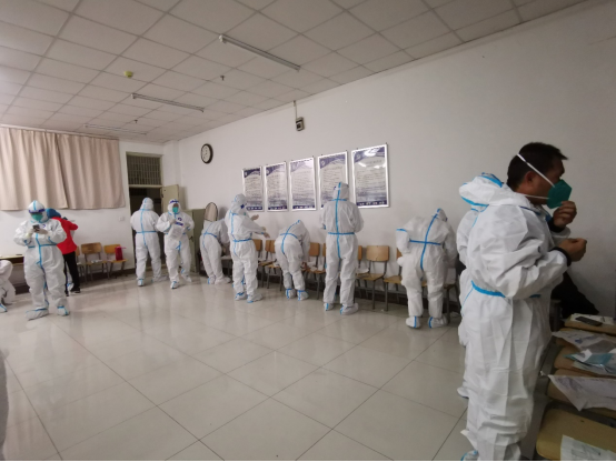 10月12日零点,贺兰山校区一名同学核酸异常,接到通知,学院值守的9名同志第一时间赶到公寓楼下,骤降的气温挡不住着急的心情,伴随着对学生们的担忧,他们在寒风中等了4个小时,凌晨5点他们进入公寓楼开展核酸检测、环境消杀、垃圾清理、学生情绪疏导等工作,一直干到下午2点。连续14个小时,没有吃饭,不能喝水,不能上厕所,每个人都到了生理的极限。武林波书记身患肾结石,平时十分注意身体的她在这个时候忍者疼痛咬牙坚持;蔡正云副院长长期胃部不适,校园封闭前因为工作忙一直没去住院治疗,这次形势紧急加之天气寒冷,体力透支,当天胃疼复发,但他硬是忍住一声不吭,下午脱下隔离服时,他里外的衣服都被冷汗打湿了,学院门房的刘师傅看到他一走进学院大厅就跪在了地上,当时,他还在接电话处理工作。