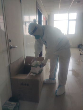 最辛苦的当属葛志军副书记,分管学生工作的他,统筹协调学院三个校区2125名学生的管理、心理疏导工作,同时他身兼贺兰山校区公寓楼楼长,学生没有物资了他要协调,出现思想波动了他要操心,值班值守人员不够了他要顶上。近一个月的时间,常常是他刚休息电话就响了,他刚脱下防护服就又要穿上,声音嘶哑、疲惫中坚持成了他的标配。