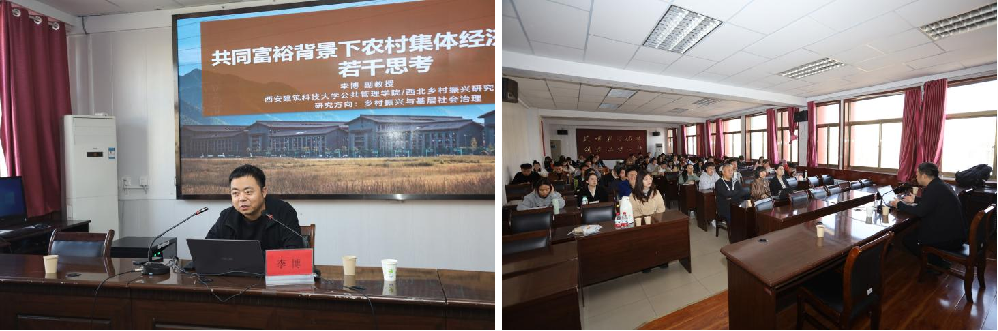 报告中,李博详细阐述了我国农村集体经济的发展历程和农村集体经济类型。他指出,在我国中西部地区,集体经济发展才刚刚起步,尤其是以产业振兴为辅助的农村集体经济发展更是乡村治理中的一项重要工作。他强调,共同富裕背景下农村集体经济的发展需要在组织形态、经营方式等方面进行有效创新。农村集体经济的发展仍面临人才缺乏、经营理念陈旧等难题,需要运用新公共管理的理念进行改造以适应农村产业兴旺的要求。最后,李博结合自己丰富的农村调研经历号召同学们深入农村、开展扎实的调查研究。