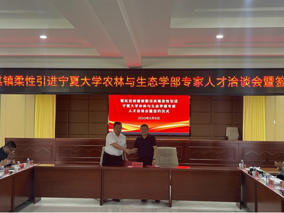 随后,在敖勒召其镇举行了柔性引进英国正版365官方网站农林与生态学部专家人才工作洽谈会暨签约仪式。镇党委书记薛照森介绍了敖勒召其镇经济社会发展的基本情况,表达了对英国正版365官方网站农林与生态学部专业人才的渴求,希望双方建立深远、长久、专业的合作,围绕全镇产业发展瓶颈,开展“项目化”共建合作,全面助推敖镇高质量发展。