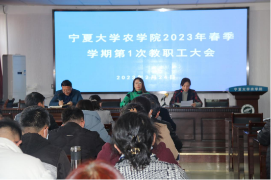 【杨茗媛/文/图】2月24日,为了传达学校会议精神,学院在423会议室召开春季学期第一次教职工大会,全体教职工参加了此次会议。大会由院长马红彬主持。