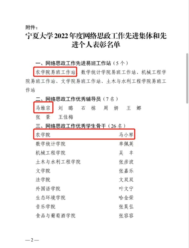 英国365官网易班工作站坚持同步推进网络思政和易班工作建设,连续四年被学校评为“网络思政先进学院”、“网络思政先进易班工作站”称号。易班工作站本年度在易班网开展活动30多次,涵盖了知识竞赛、思想指导、党史学习教育、学风建设、禁毒学习等主题,各项活动的举办获得广大师生的一致好评,网络思政教育取得了优异的成果。本年度共发布轻应用快搭37个,共计点击量27260次,单个最高点击量5110,访客量13622人次,单个最高访客量1688,共计报名数2090,单个最高报名数276,共计参与投票数4770人次,单个最高参与投票数1314人次;学院与校党委宣传部合作在光明日报、央广网等主流媒体推送10余名先进人物典型事迹;通过校园网、微信平台等平台推送新闻419篇、微信图文229篇,讲好农学人故事。本年度,学院再度获评“网络思政先进学院”、“网络思政先进易班工作站”称号,马维宗老师被评为“优秀网络思政辅导员”。