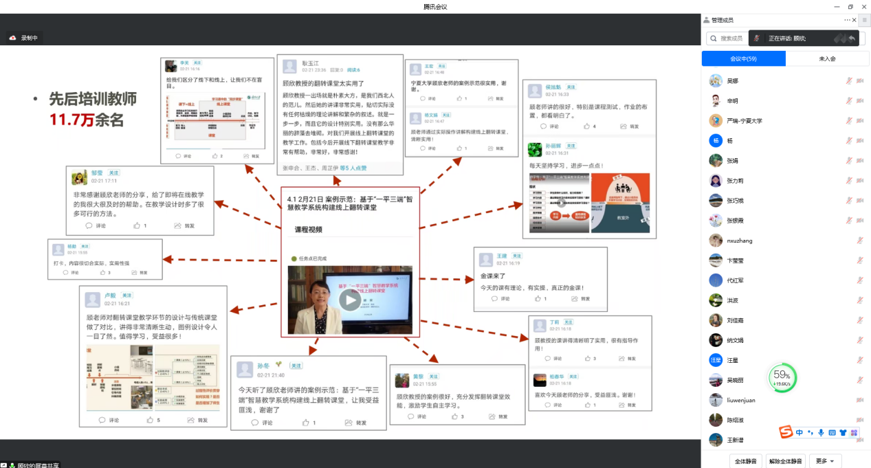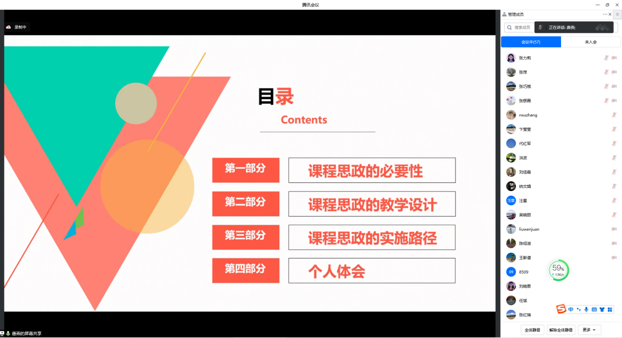 [苟妍/文/图]为了进一步提高教师教育教学水平,优化课堂教学;用直观、新颖的教学方法,传递新的教学思想、展示新的教学手段,充分发挥优秀教师示范引领作用。2022年12月21日,教学办公室组织开展线上公开示范课,张雪艳副院长主持会议,2位教师进行主题报告,60余名教师参加了本次教学活动。