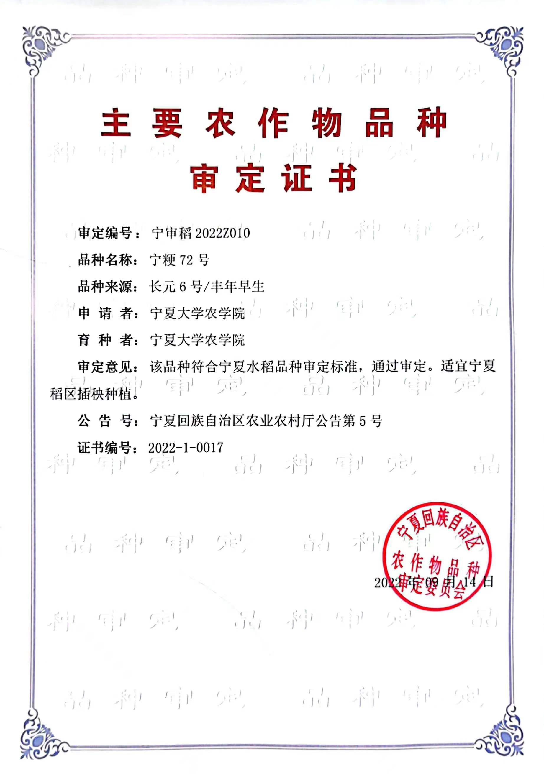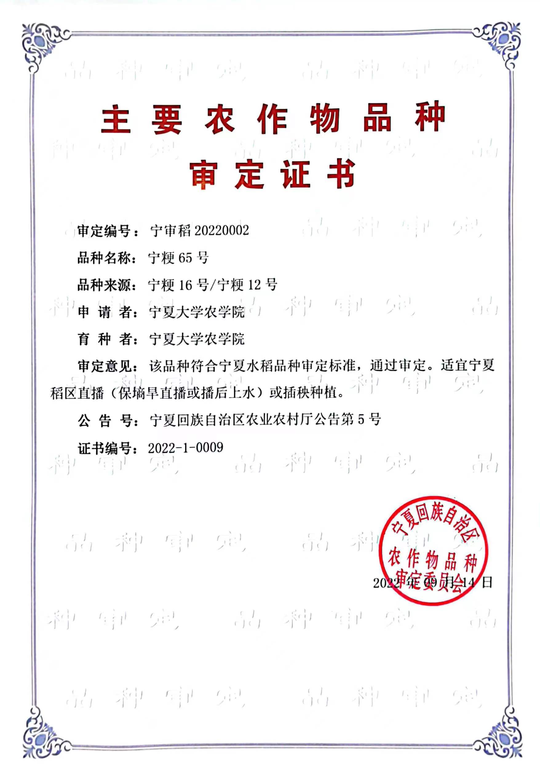 【张银霞/文、李培富/审】经过宁夏回族自治区农作物品种审定委员会水稻专业委员会初审,自治区农业农村厅和国家农业农村部网上公示,近日,宁夏回族自治区农业农村厅发布公告,宁夏大学农学院2个水稻新品系宁大6号和宁大黑粳1号通过了自治区农作物品种审定委员会审定,分别定名为宁粳65号、宁粳72号。宁粳65号属早中熟品种,具有优质高产抗病抗倒伏耐直播等特点,适宜于宁夏稻区机械直播或插秧种植。宁粳72号具有黑色种皮、富含铁锌等微量元素,是宁夏第一个自育通过审定的特殊类型水稻品种,适宜于宁夏稻区插秧种植。