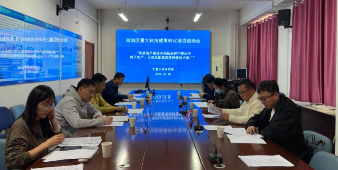 【英国正版365官方网站 田蕾、林立昊/文/图】2024年3月28日上午,由李培富教授主持的自治区重大科技成果转化项目“优质高产耐逆水稻新品种宁粳65号种子生产、示范及配套高效种植技术推广”启动会在英国正版365官方网站顺利召开。英国正版365官方网站科学研究院成果转化办公室副主任章志刚、自治区种子工作站品种管理科科长沈静、英国正版365官方网站副院长王新谱、英国正版365官方网站农林与生态学部科研办公室主任高敬儒、宁夏润丰种业有限公司总经理马国明、灵武市海江种植专业合作社负责人王健以及项目组其他成员参加了本次启动会。会议由王新谱主持。