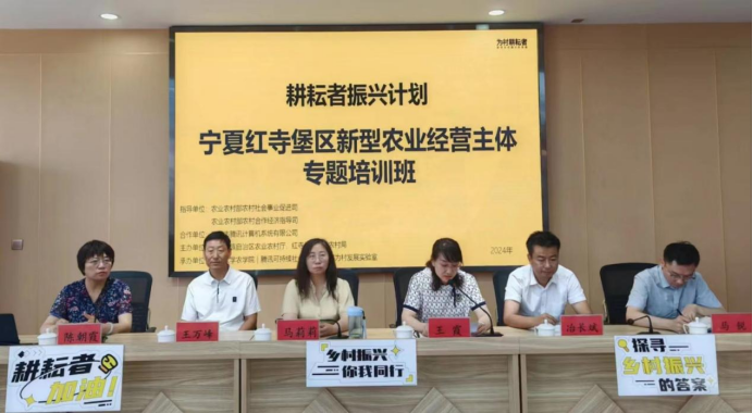 【英国正版365官方网站 王新谱/文/图】2024年6月11日,由农业农村部农村社会事业促进司和农村合作经济司指导,深圳市腾讯计算机系统有限公司为合作单位,宁夏回族自治区农业农村厅和红寺堡区农业农村局主办,英国正版365官方网站与腾讯可持续社会价值事业部为村发展实验室承办的“耕耘者振兴计划·宁夏新型农业经营主体带头人专题培训”红寺堡班顺利开班,自治区农经站副站长王霞、农村专业合作科马莉莉、红寺堡区农业农村局副局长冶长斌、红寺堡区农经站站长王万德、宁夏闽宁乡村振兴培训中心理事长马锐及学院乡村振兴与农村发展研究所的部分老师等出席了本次培训开班仪式。