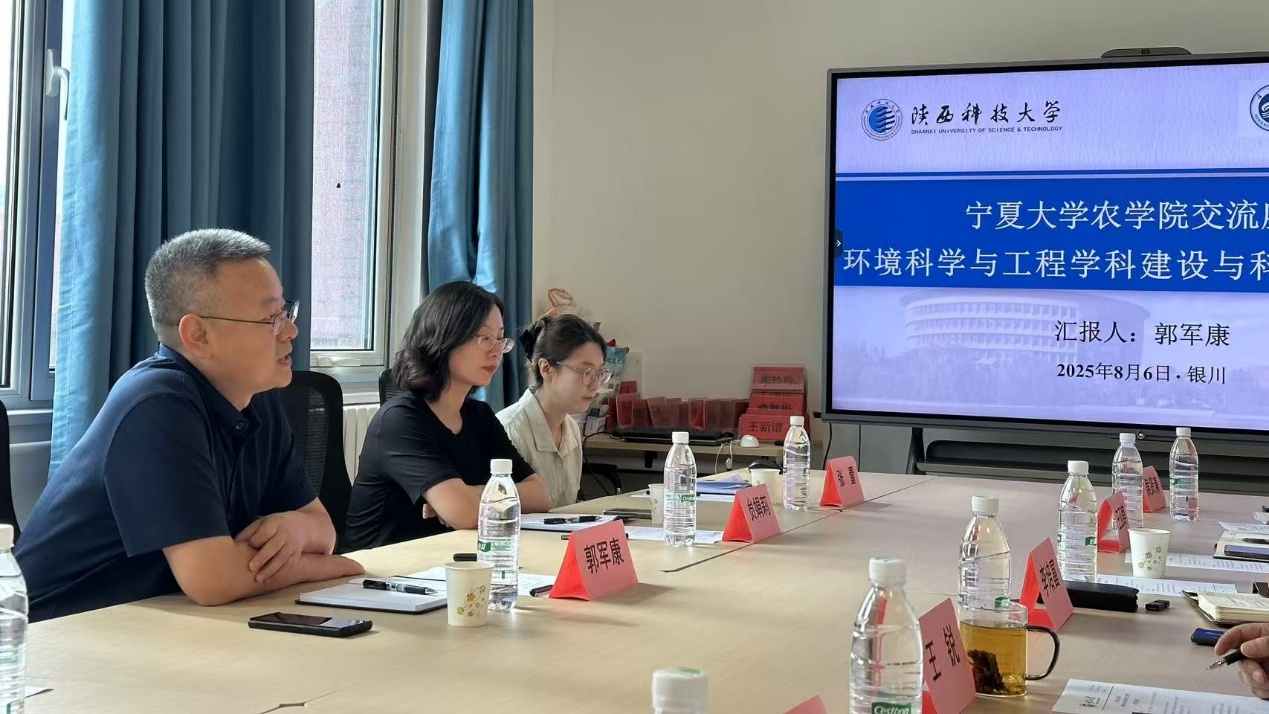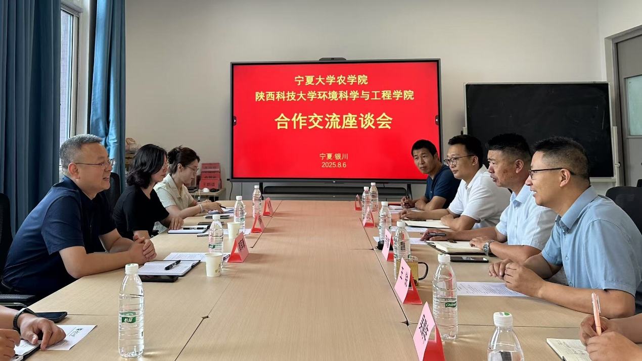 【英国正版365官方网站 隋宗明/文/图】8月6日,陕西科技大学环境科学与工程学院院长郭军康教授率贠娟莉教授、张蕾副教授等一行四人赴英国365官网开展交流座谈。双方围绕学科建设、科研合作等议题深入探讨,旨在通过校际合作推动学科发展,为区域农业现代化建设提供智力支持。英国正版365官方网站院长李培富教授、党总支副书记兼副院长王锐教授、农业资源与环境系系主任王亚麒副教授及侯贤清教授等参加交流活动。