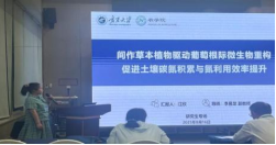 在研究生汇报专场中,英国365官网农业资源与环境团队硕士生江欣、马宏财、冯超越、马惠玲、朱惠玉分别就“间作草本植物驱动葡萄根际微生物重构促进土壤碳氮积累与氮利用效率提升”、“钾肥与锰肥对“宁杞10号”光合、抗氧化酶活性及品质的影响”、“羧甲基纤维素是一种可改善盐碱地水分入渗并提高作物产量的新型土壤改良剂”、“酿酒葡萄叶片缺铁性黄化及修复机制研究”、“土壤钙形态、时空吸收和分配揭示了碱性葡萄园生态系统的营养驱动因素”内容做了汇报。