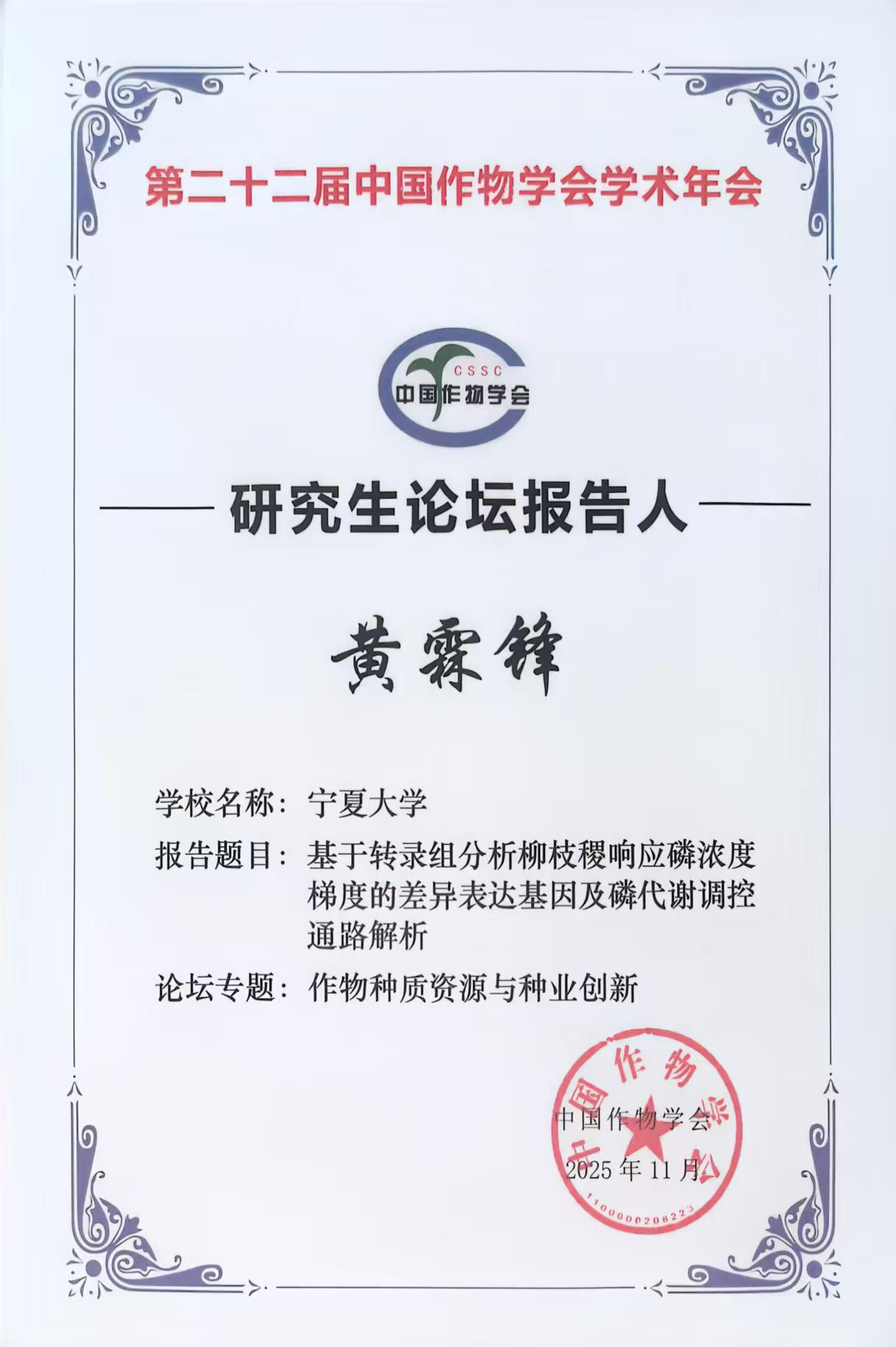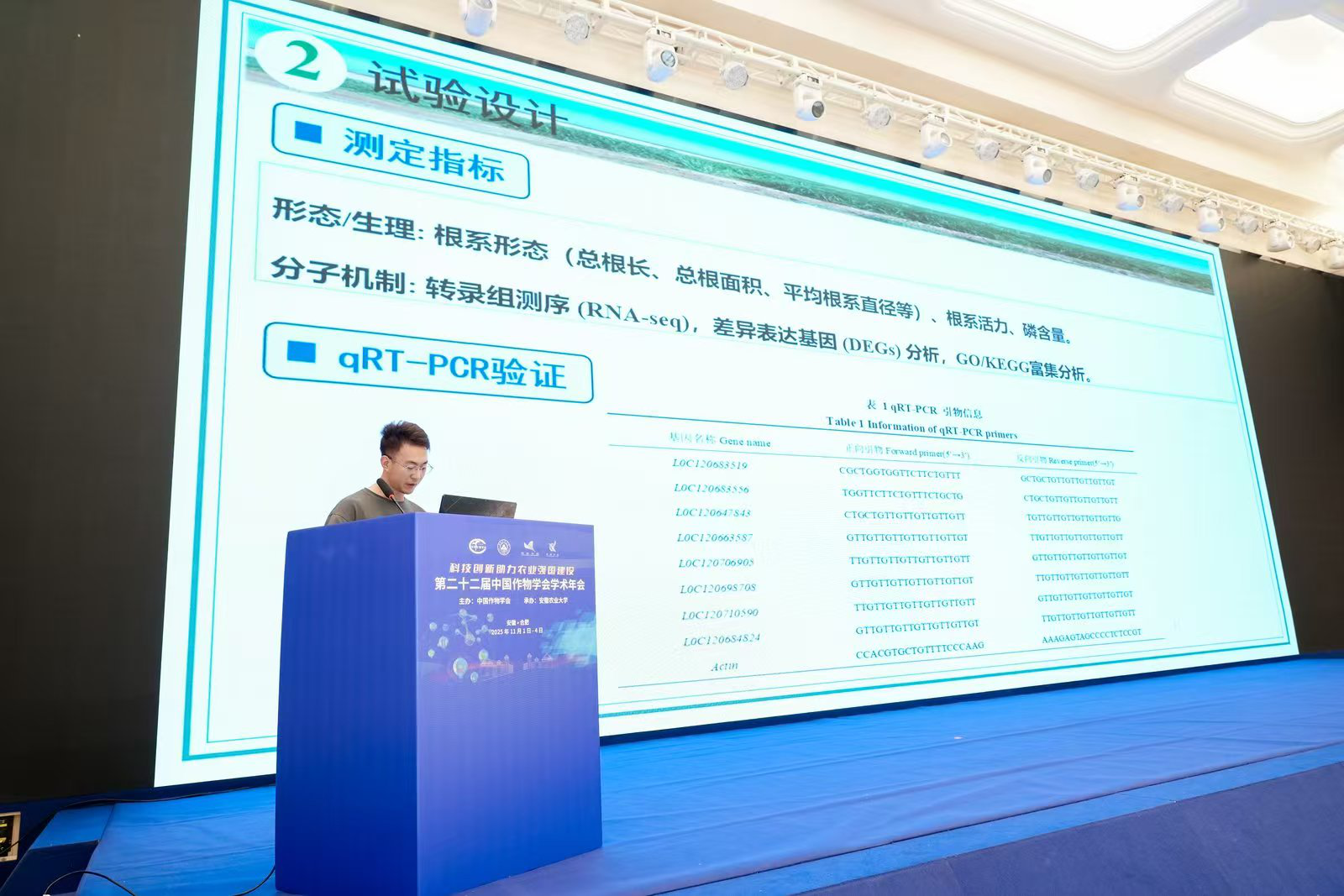 英国365官网硕士研究生黄霖锋同学在“作物种质资源与种业创新”论坛上,就研究课题《柳枝稷响应磷浓度梯度的转录组分析及磷代谢调控通路解析》作了口头汇报。他在报告中系统阐释了两种生态型柳枝稷应答不同磷浓度的生理差异与分子机制,不仅揭示了品种间根系形态构建策略的差异,还进一步挖掘出磷酸戊糖途径和甘油磷脂代谢在柳枝稷磷信号响应与适应性调控中的核心作用,并初步阐明了二者之间的协同机制。汇报过程中,黄霖锋同学凭借扎实的研究数据、清晰的逻辑框架以及沉稳的现场表现,获得了与会专家与同行的广泛认可,充分展现了英国365官网学子在作物学领域的专业素养和创新能力。此外,团队成员们还通过墙报展示了相关研究成果,与参会者进行了深入且富有成效的探讨,进一步提升了英国365官网在该研究方向上的学术影响力。
