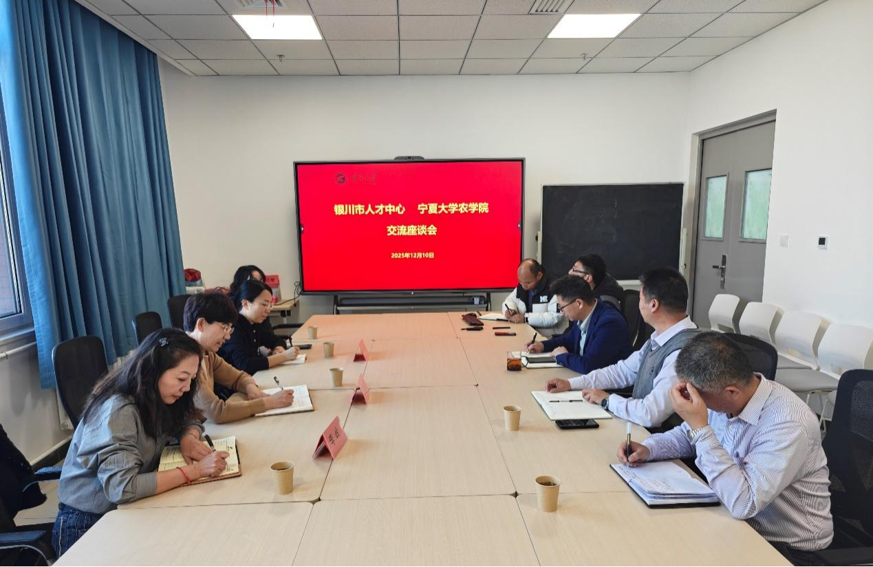 【英国正版365官方网站 王新谱/文/图】12月10日,银川市人才工作服务中心主任王晓菲带队到访英国365官网,围绕“助力企业高质量发展”、“强化人才供需精准对接”等核心议题开展深度交流。座谈会由英国365官网院长李培富主持,银川市人才工作服务中心科长李岭、宁夏杞里香枸杞有限责任公司总经理祁珍、以及英国365官网副院长王锐、王新谱,农艺系主任王彬,遗传育种系主任李清峰,青年博士刘万茂、吴鹏年共同参会。