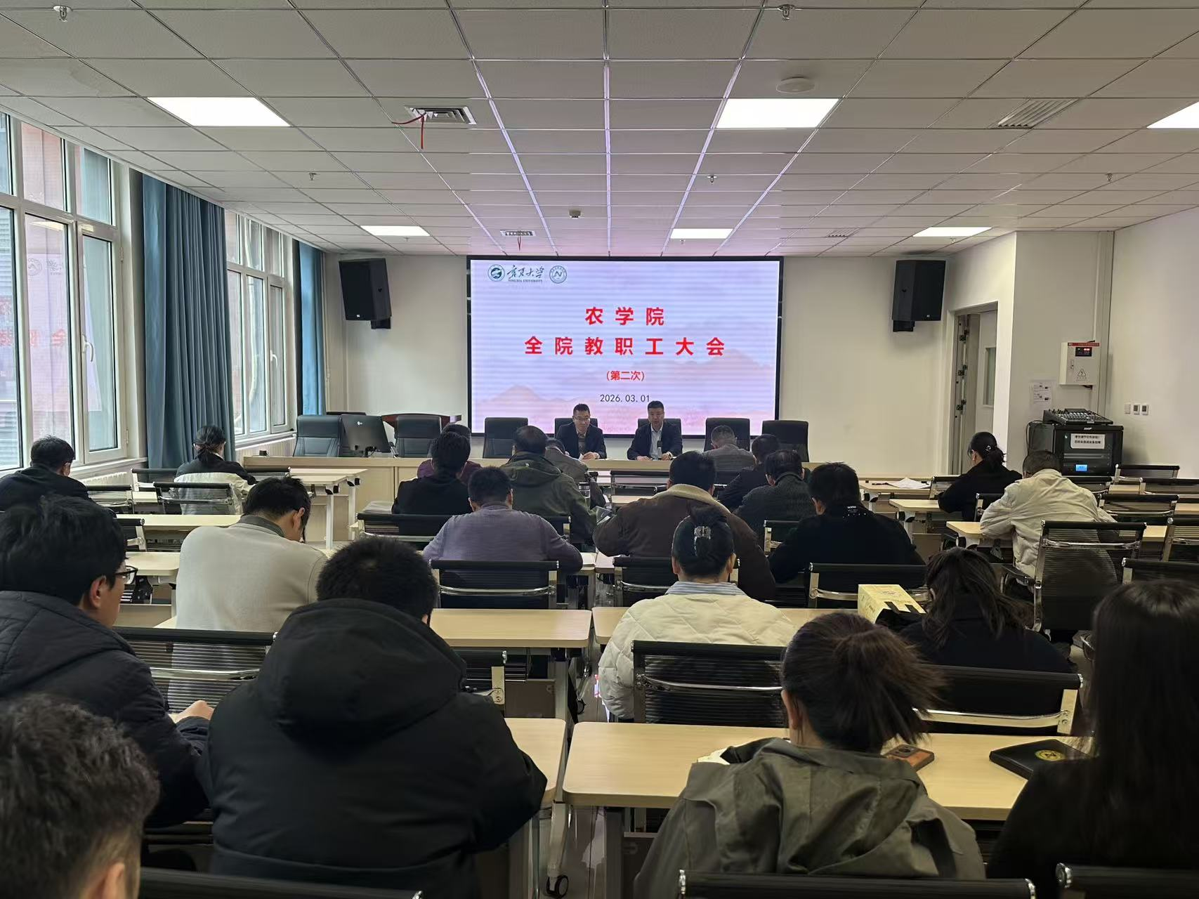 会议伊始,学院党总支书记苏宇静组织学习习近平总书记在省部级主要领导干部学习贯彻党的二十届四中全会精神专题研讨班开班式上的重要讲话精神,深入解读《关于在全党开展树立和践行正确政绩观学习教育的通知》核心要义,传达自治区十三届人大常委会第二十三次会议、政协十二届四次会议主要精神。苏书记强调,全院教职工要提高政治站位,把握“十五五”规划开局之年的时代要求,立足学院办学特色,牢记为党育人、为国育才使命,以实干担当践行强农兴农责任,推动学习成果转化为发展实效。