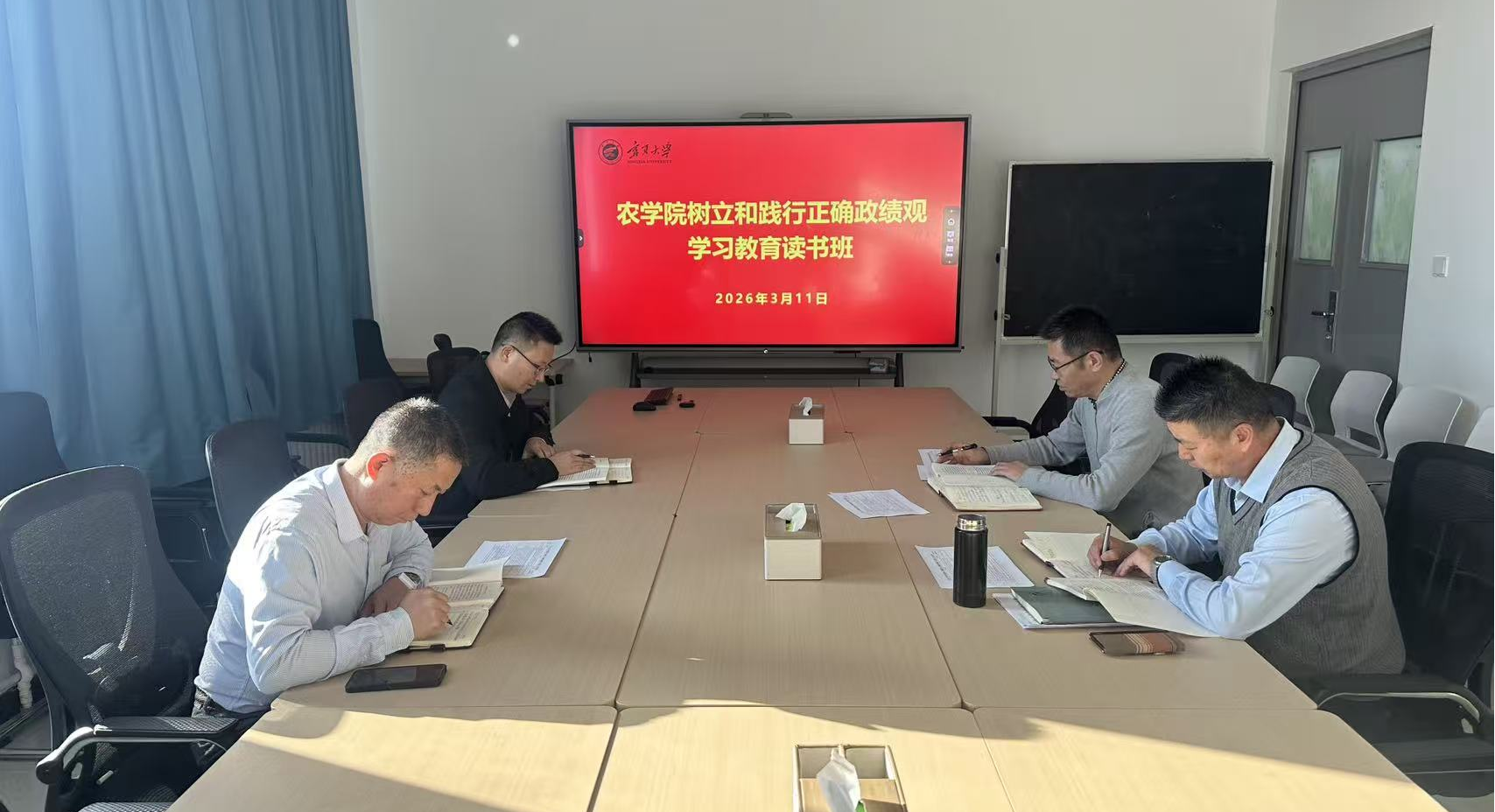 【英国正版365官方网站 王新谱/文/图】为深入贯彻党中央、自治区党委和校党委关于树立和践行正确政绩观学习教育的部署要求,3月11日,英国正版365官方网站党总支举办树立和践行正确政绩观学习教育读书班。读书班由党总支书记苏宇静主持,班子成员集中学习《习近平关于树立和践行正确政绩观论述摘编》,深刻领会正确政绩观的核心要义和实践要求。
