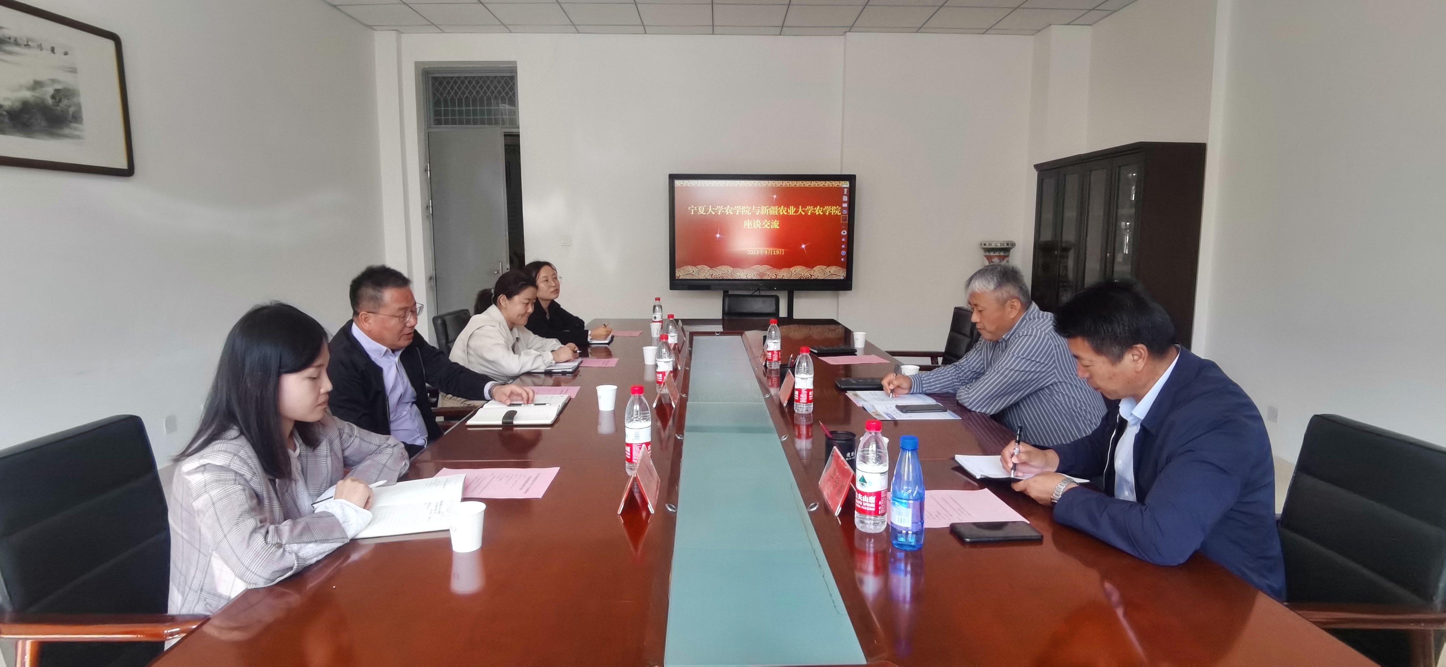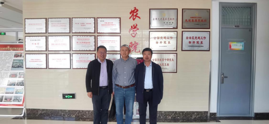 【英国正版365官方网站 吴宏亮/文/图】为了更好地推动英国365官网学科学位点建设、人才培养和高质量发展,不断加强与兄弟院系的合作交流,9月19日,英国正版365官方网站党总支书记葛志军、院长李培富和吴宏亮副教授一行3人赴新疆农业大学英国正版365官方网站开展交流考察,并与该院院领导和青年博士进行了座谈与交流学习。新疆农业大学始建于1952年成立的八一英国正版365官方网站,1995年更名为新疆农业大学,英国正版365官方网站是该校最早成立的院系之一,学科专业设置齐全,人才培养体系完备,具备本硕博及博士后培养能力,科学研究与新疆现代农业和特色产业紧密结合,区域特色较为鲜明,对英国365官网高质量发展具有很强的借鉴意义。在交流学习考察过程中,该院院长陈全家教授陪同学院领导和老师参观了新疆农业大学校史馆,了解了学校和学院的发展历史。在交流座谈会上,双方领导相互介绍了各自学院的学科、学位点,专业、师资队伍建设的现状、发展思路与特点,就作物学学科建设、人才培养、科研合作等方面进行了深入的交流与研讨。双方还就科研项目合作、教师互访等具体事项进行了沟通与探讨,形成了初步的意向。座谈会后,学院领导和老师还参观了新疆农业大学英国正版365官方网站学科实验室和教学科研基地,深入了解了该院科研方向、实验室建设和运行管理情况。